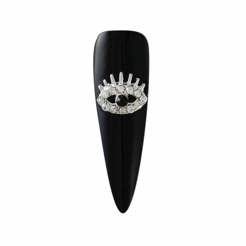 These silver eye nail charms with rhinestones are super unique and chic for your next manicure!