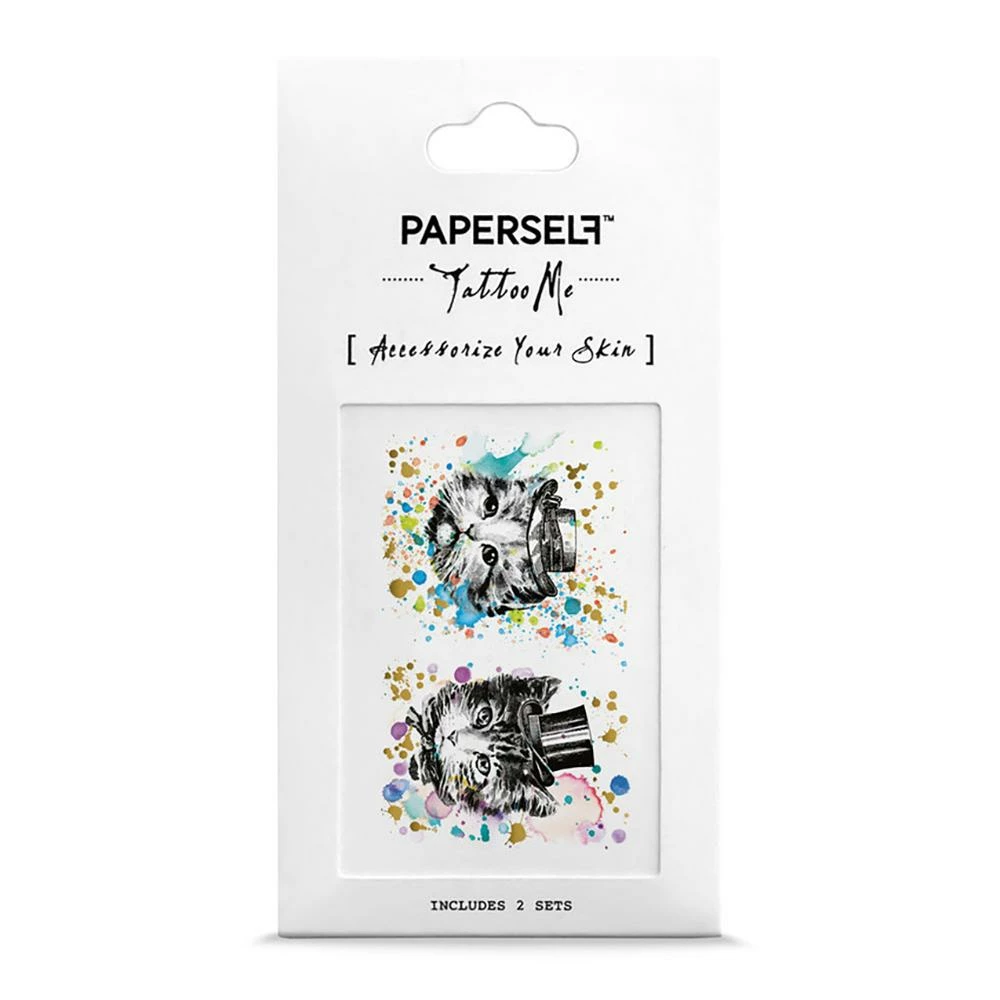 Cute cat temporary tattoo with colour and metallic to create beautifully detailed striking designs on the skin.