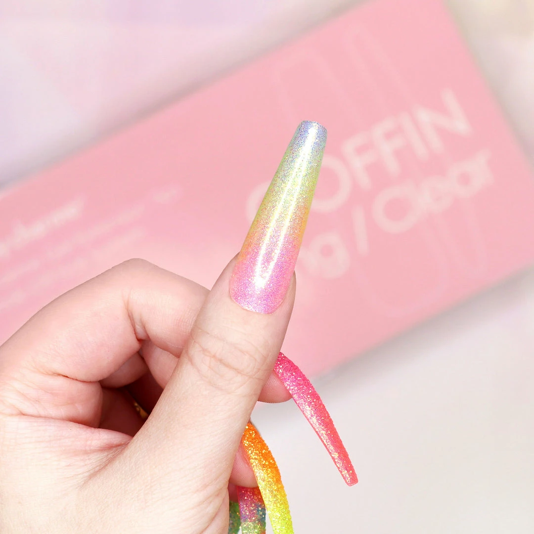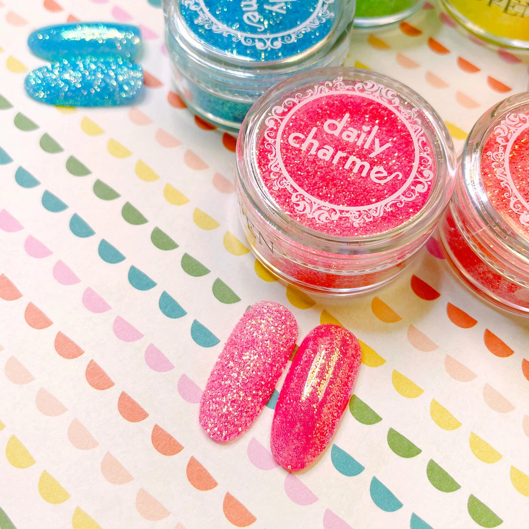 Daily Charme Glitter Dust is a fine hex glitter that can be used with gel, acrylic or nail polish for endless designs. Glitter Dust is great for creating raw sugar dust nails, and can be burnished or encapsulated for a more traditional glitter nail look. This glitter can be applied directly on the nail, or mixed into clear gel or acrylic powder to create a custom glitter blend.