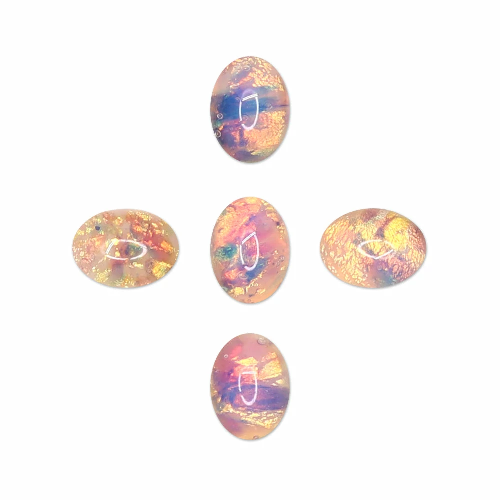 Gorgeous oval shape fire opal glass gems in mesmerizing rainbow colors. Perfect size for nail art.