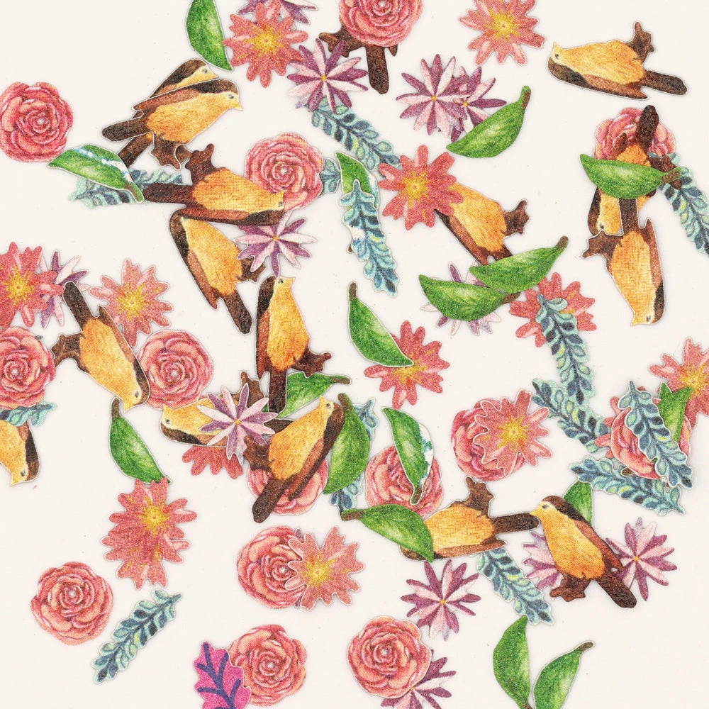 Wear these adorable goldfinch birds, colorful flowers and green leaf on your nails to attract good luck, prosperity and positivity! These soft and thin paper glitters can be easily bent to create a curve to fit nicely on the nails. Size ranges from 5mm-10mm.