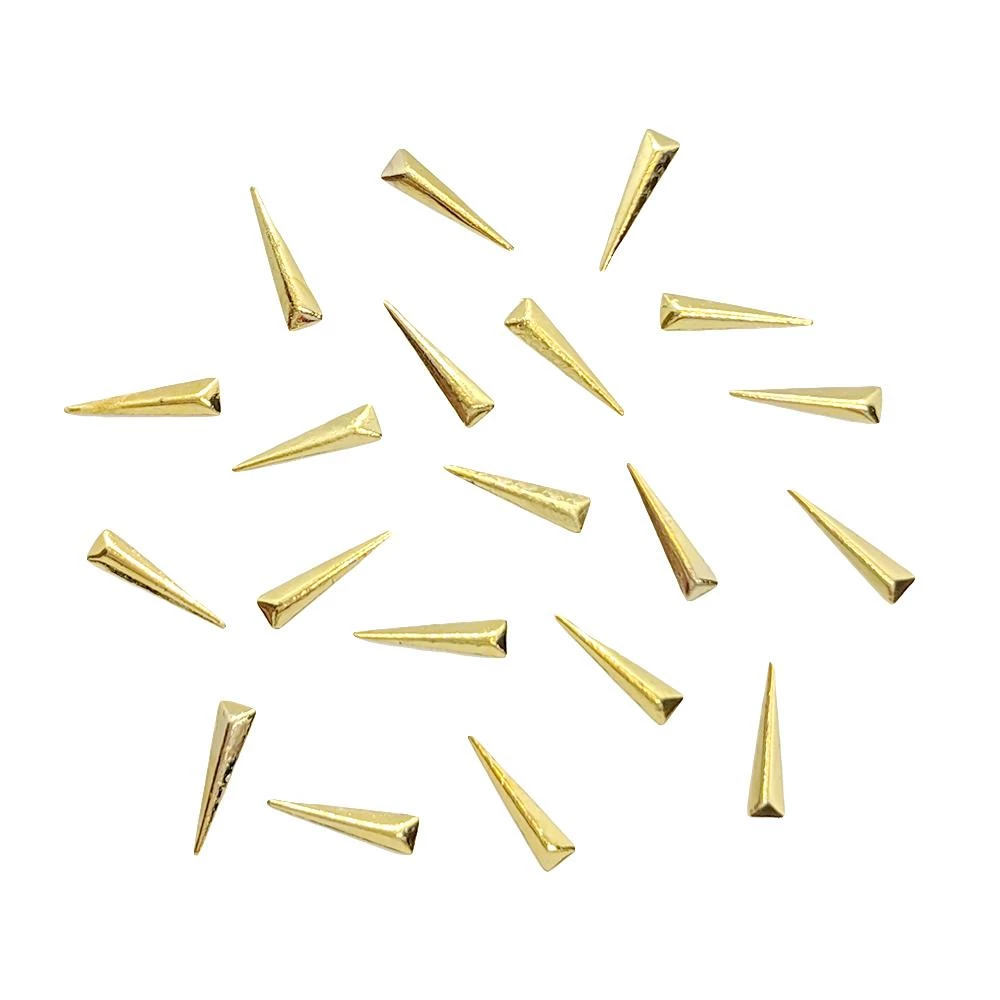 Pack of 20 pieces of gold long skinny triangle studs. These versatile studs are the perfect accent piece to any nail design!
