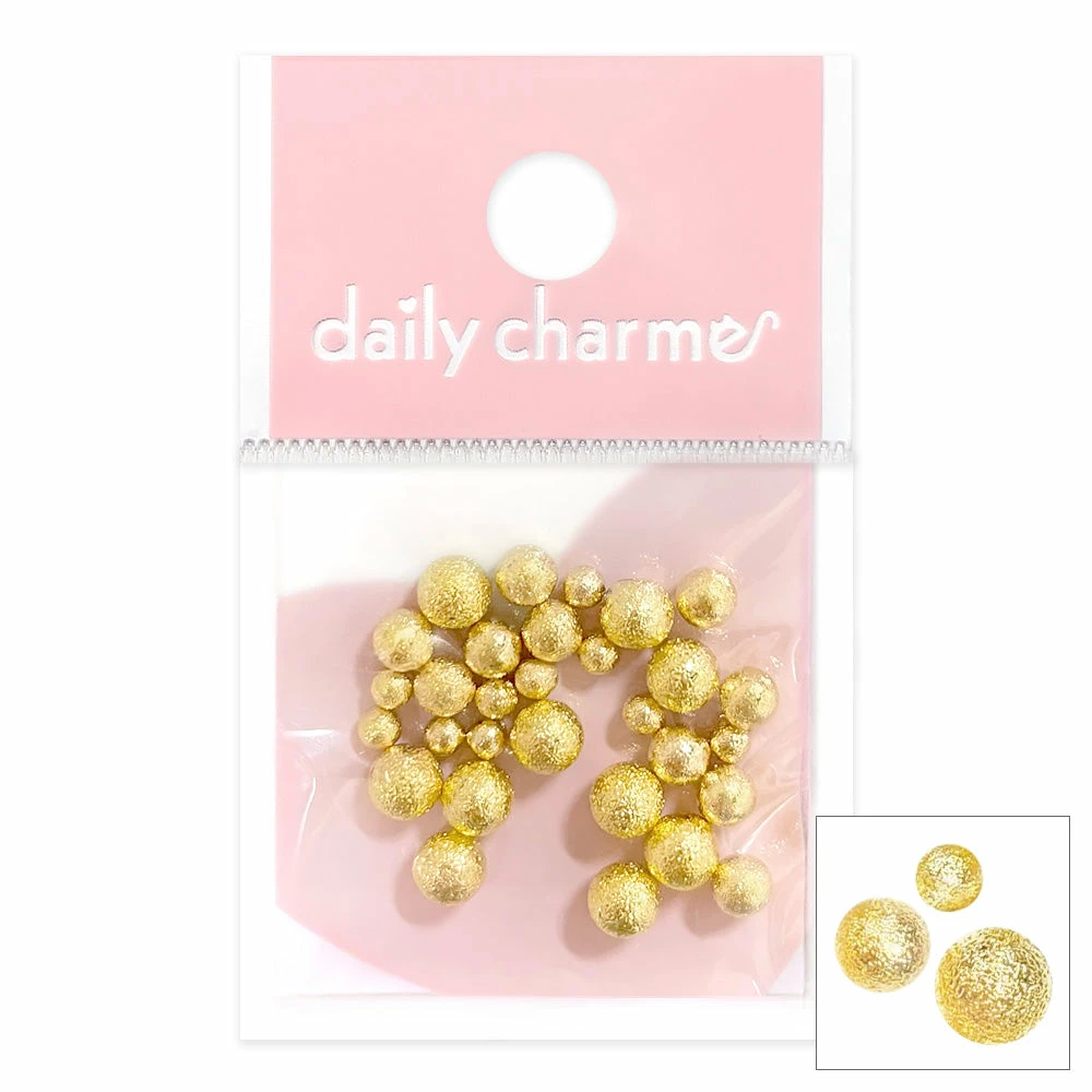 High quality textured matte metallic beads with no holes in gold color. Use these beads to create unique nail charm clusters. These gold plated beads have more weight and are more scratch resistant than the normal plastic beads.