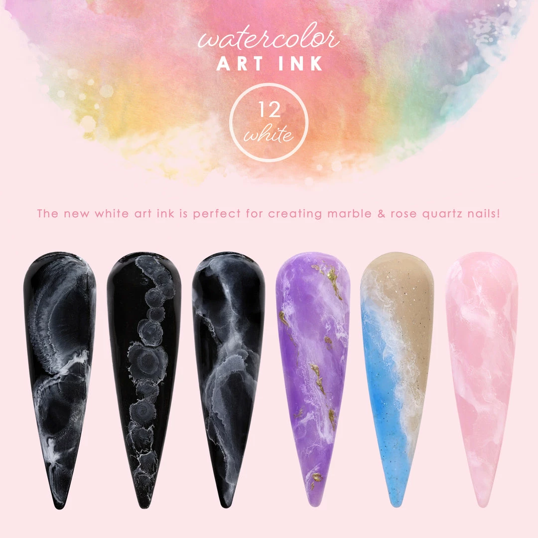 The art inks can be directly applied over acrylic nails, cleaned tack-free gel polish or matte topcoat. The curated colors are perfect for marble, gemstone, jade, tie dye, ocean, or pastel rainbow nail art. Get the complete set to unlock the full potential of your creativity!