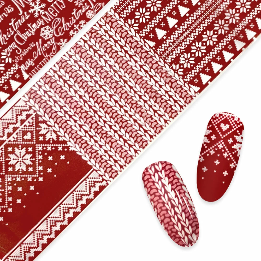 Festive red and white foil with cozy Christmas sweater patterns and Merry Christmas messages. Use this foil to decorate your Christmas nails and winter holiday nails, foil transfer is an easy way to add full coverage or accent nail art to your nails.