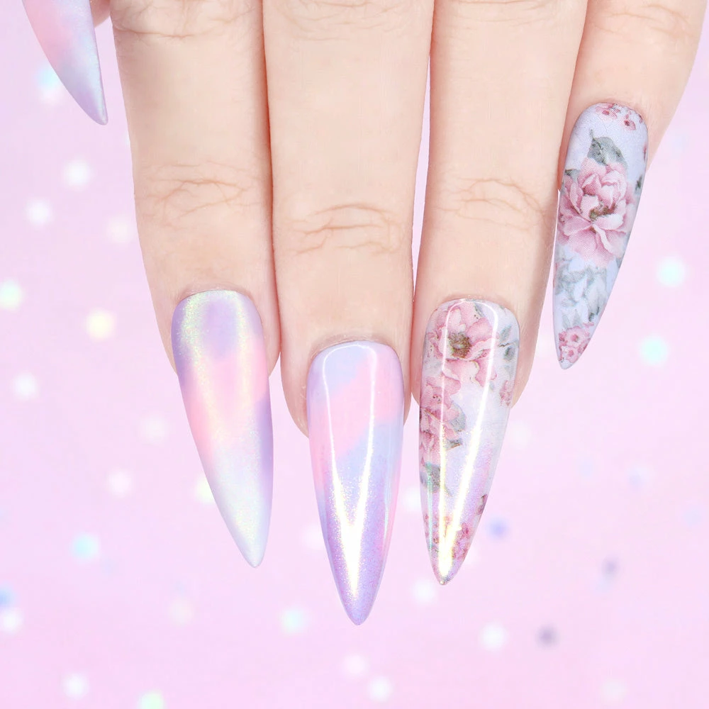 Think of having English afternoon tea with pink roses around you! This foil is perfect with Charme Gel 807 Tea Time. Create beautiful watercolor style floral nail art on your nails. Our foils can be easily applied using foil glue or DC Foil Transfer Gel.