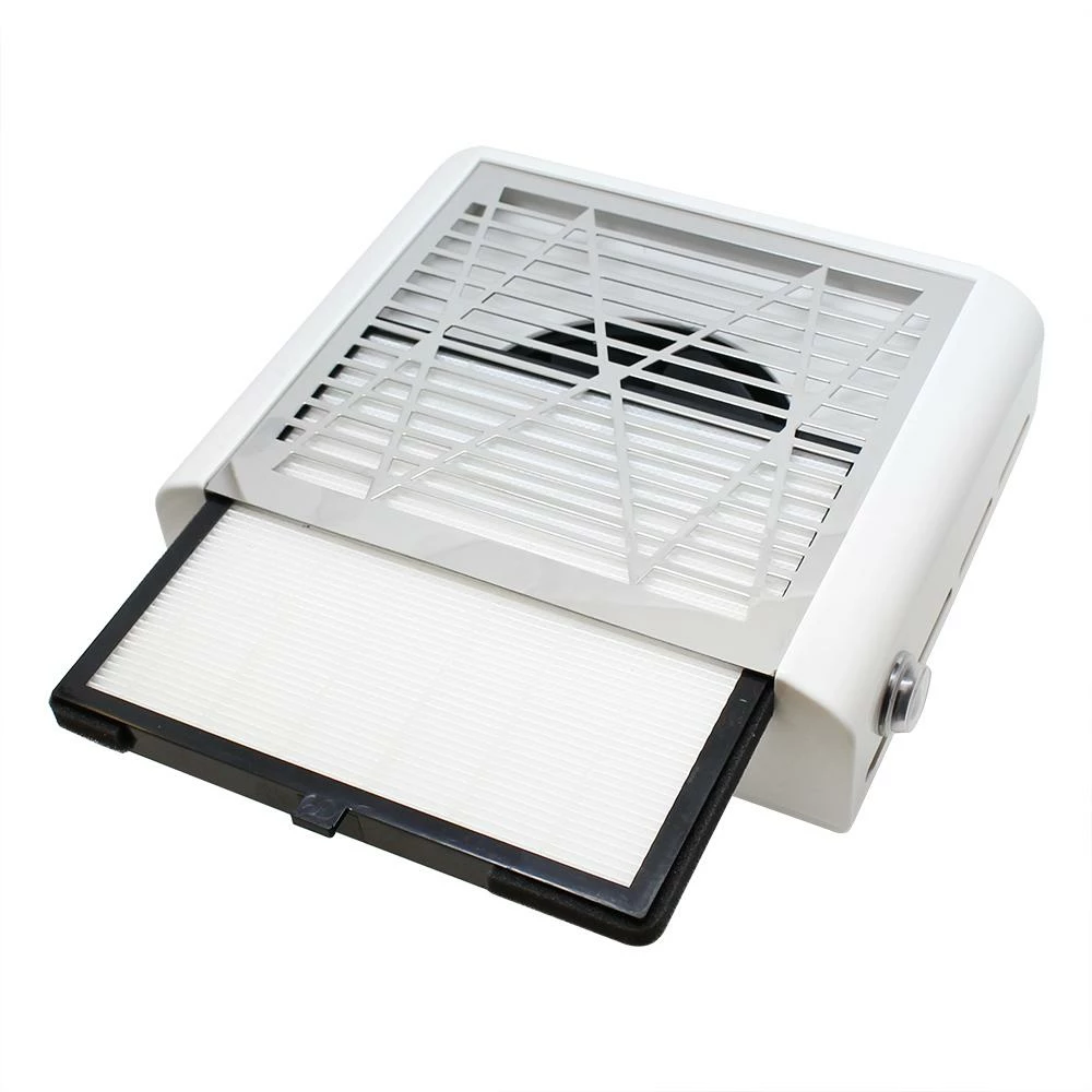 This powerful tabletop nail dust collector is an essential tool to help you keep your workspace dust free! Great for collecting dusts while filing off gels or acrylic nails. Effective yet affordable nail dust collector!
