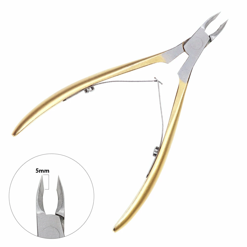 Professional nail cuticle cutter with a standard 5mm blade. This stainless steel nipper is super sharp so please use with caution when trimming cuticles. Featuring a no-spring smart opening design that offers great elasticity and comfort when in use. Perfect for a Russian style manicure. Comes with point protector and metal container.