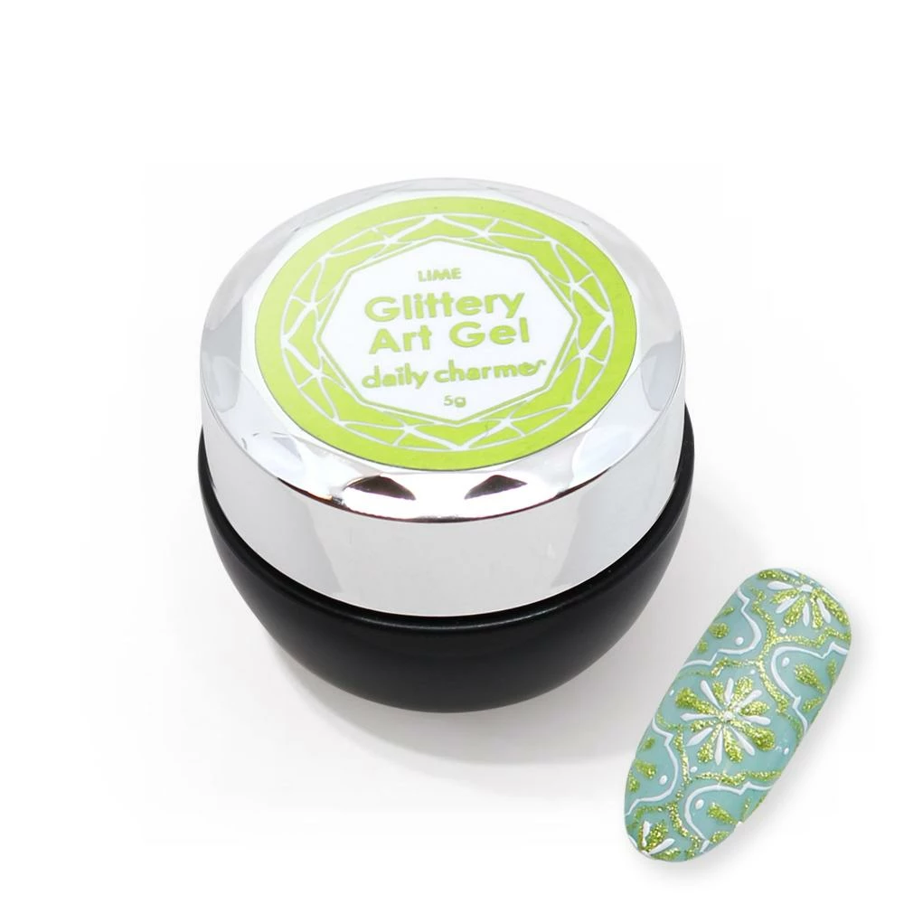 New Glittery Art Gel in Lime. This line of potted glittery art gels are made with super shiny fine glitters in thick consistency, making it perfect for drawing detailed line art. It’s also great for just full coverage glitter nails.