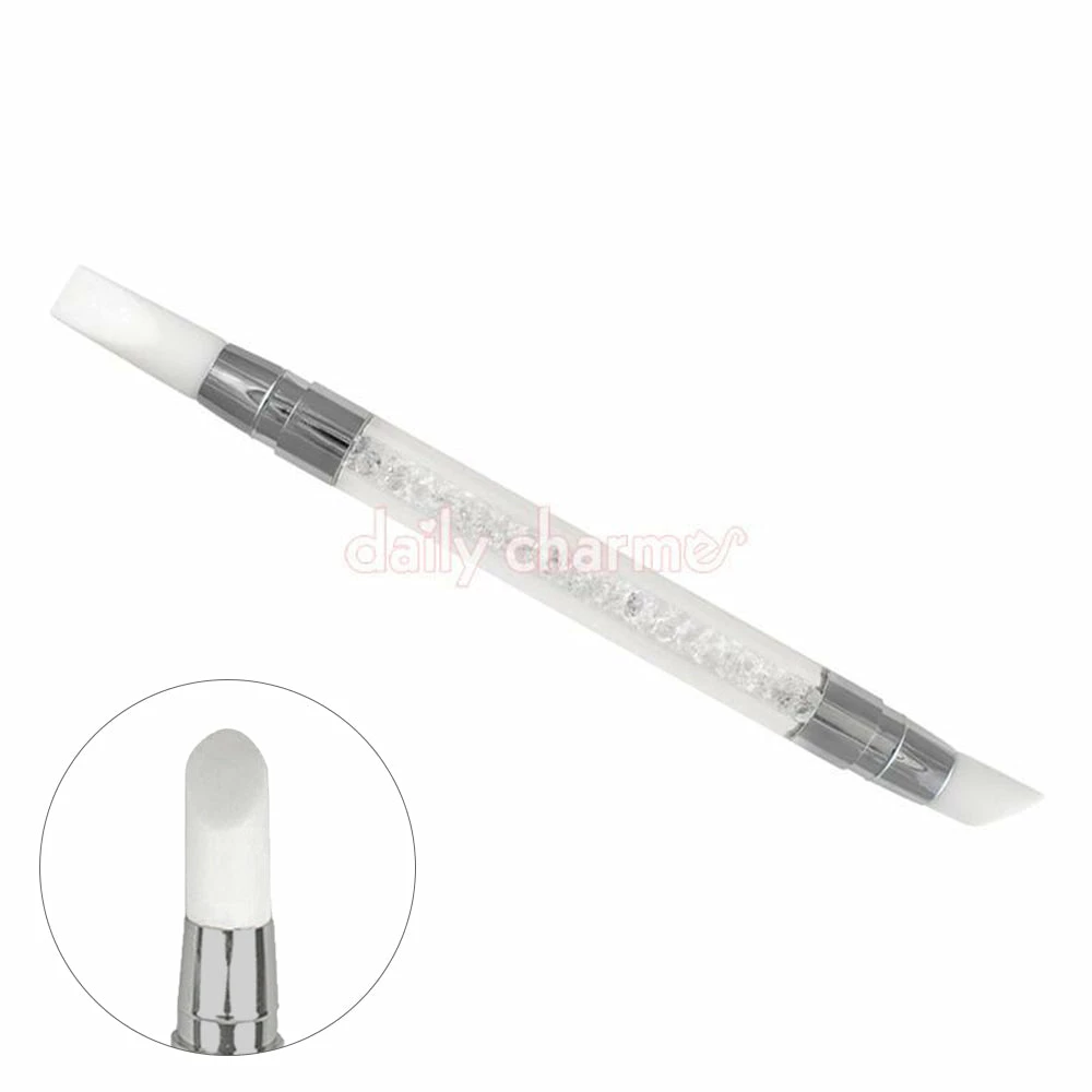 A super soft double sided silicone nail art pen brush that is perfect for applying powders or glitters on your nails.
