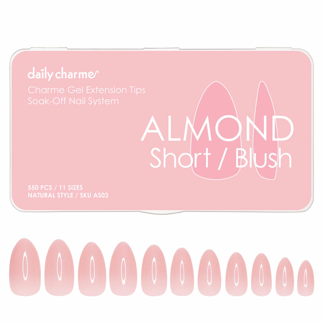 Tips: We recommend sealing your extensions with gel top coat to add strength and to prevent fogging of the nail tip. For longer length extensions, we recommend applying Daily Charme 5-in-1 Strengthening Gel or another builder gel to create a stronger nail.