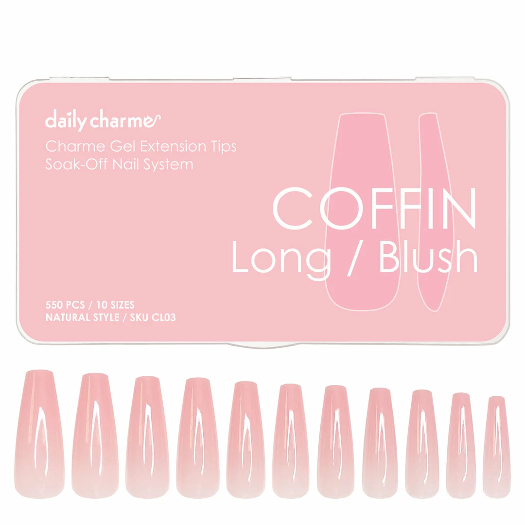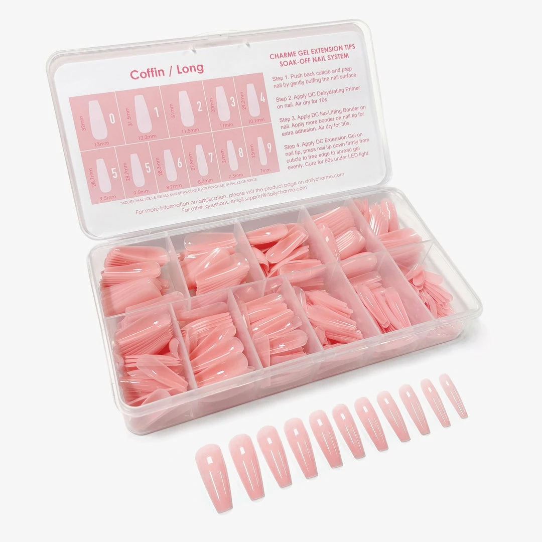 Tips: We recommend sealing your extensions with gel top coat to add strength and to prevent fogging of the nail tip. For longer length extensions, we recommend applying Daily Charme 5-in-1 Strengthening Gel or another builder gel to create a stronger nail.