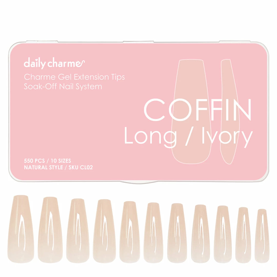 Tips: We recommend sealing your extensions with gel top coat to add strength and to prevent fogging of the nail tip. For longer length extensions, we recommend applying Daily Charme 5-in-1 Strengthening Gel or another builder gel to create a stronger nail.