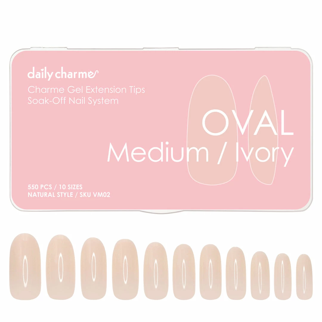 Tips: We recommend sealing your extensions with gel top coat to add strength and to prevent fogging of the nail tip. For longer length extensions, we recommend applying Daily Charme 5-in-1 Strengthening Gel or another builder gel to create a stronger nail.