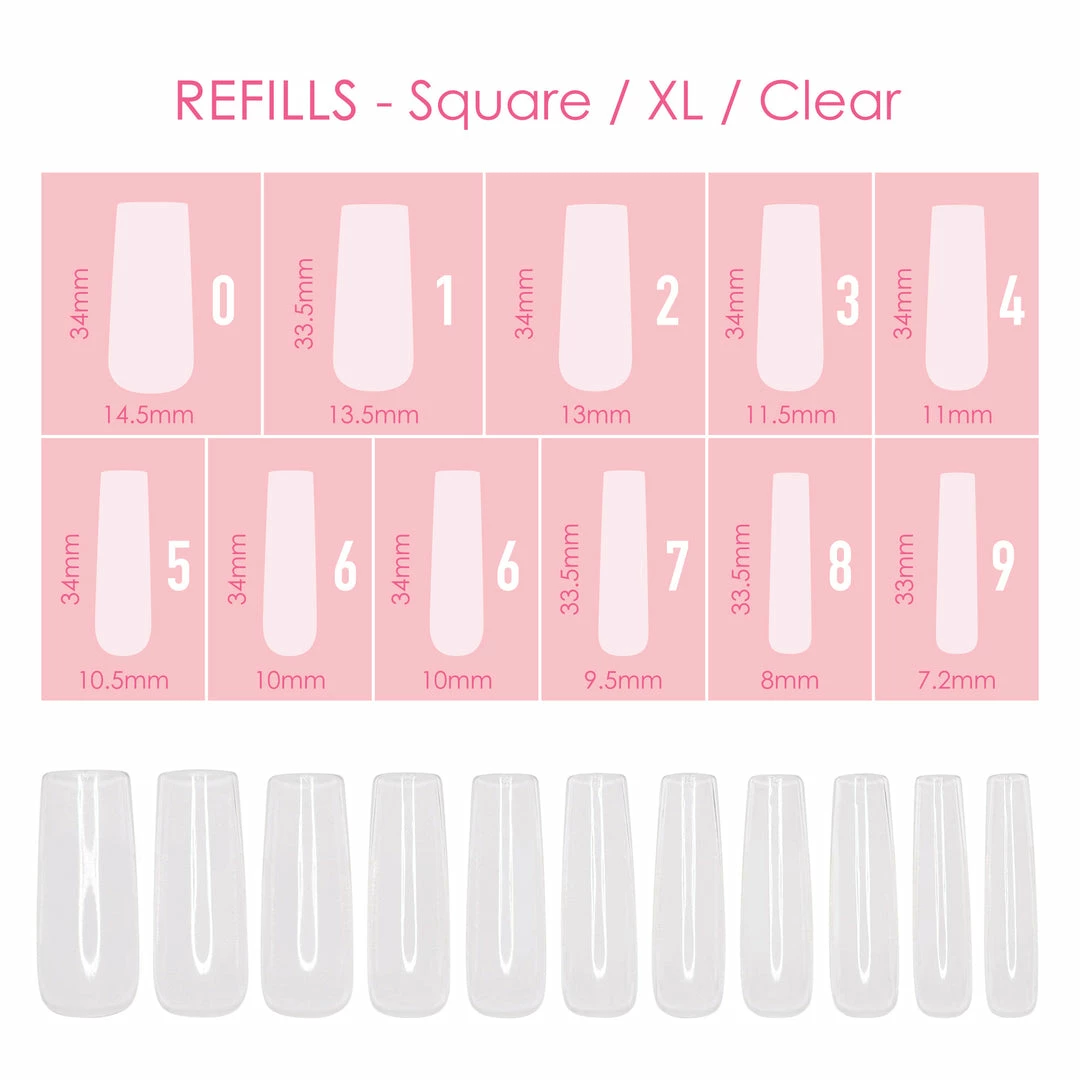Refill packs and additional sizes for Charme Gel Nail Extension Tip boxes. Each pack includes 25 pieces of same sized nail tips, these are great for stocking up on popular sizes that tend to run out faster!