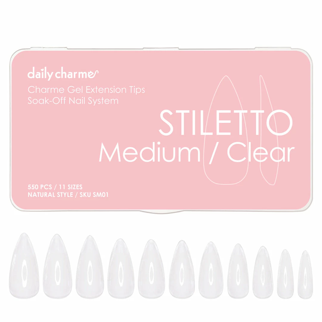 Tips: We recommend sealing your extensions with gel top coat to add strength and to prevent fogging of the nail tip. For longer length extensions, we recommend applying Daily Charme 5-in-1 Strengthening Gel or another builder gel to create a stronger nail.