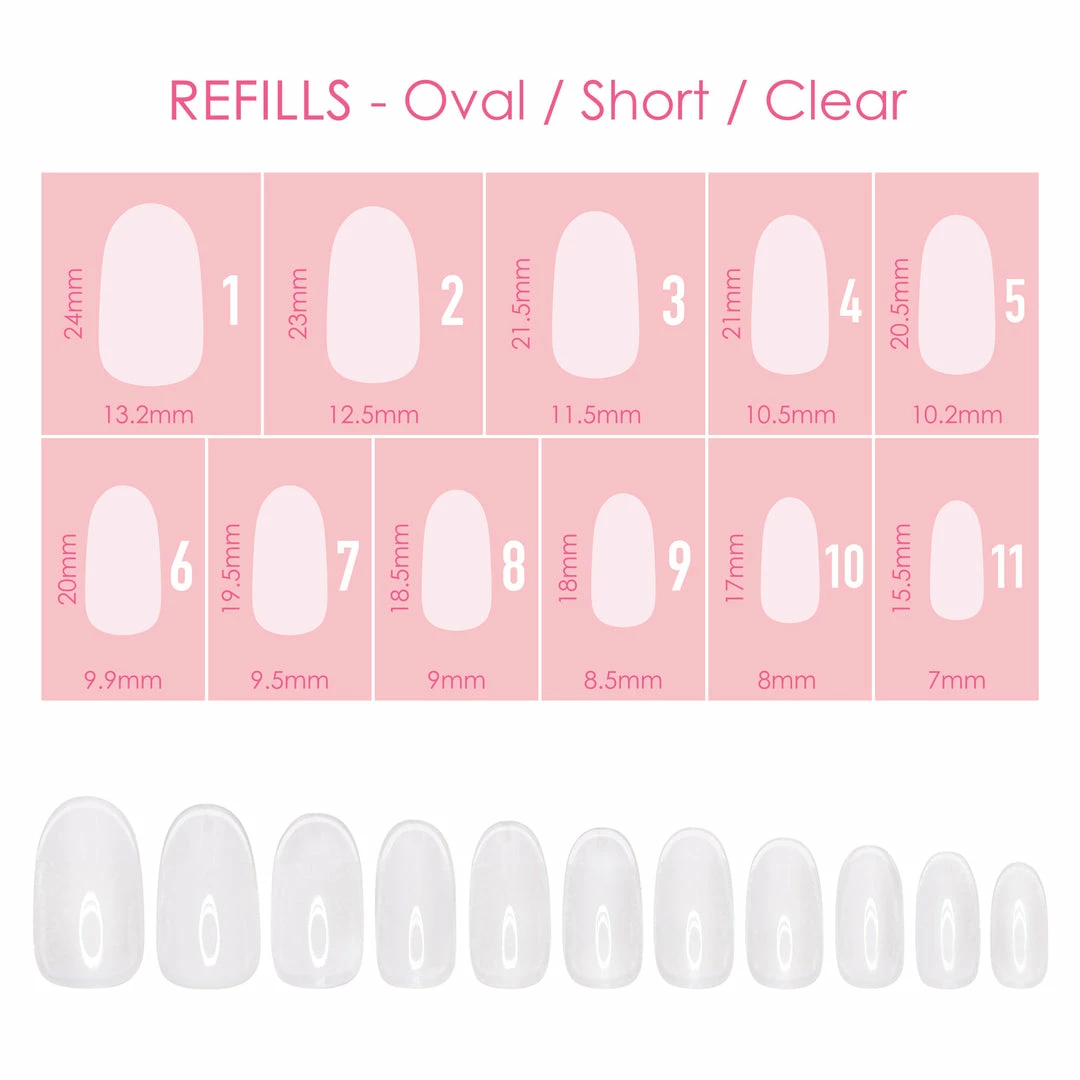 Refill packs and additional sizes for Charme Gel Nail Extension Tip boxes. Each pack includes 50 pieces of same sized nail tips, these are great for stocking up on popular sizes that tend to run out faster!
