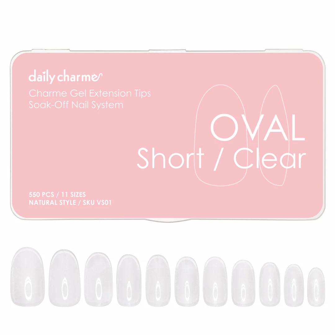 Tips: We recommend sealing your extensions with gel top coat to add strength and to prevent fogging of the nail tip. For longer length extensions, we recommend applying Daily Charme 5-in-1 Strengthening Gel or another builder gel to create a stronger nail.