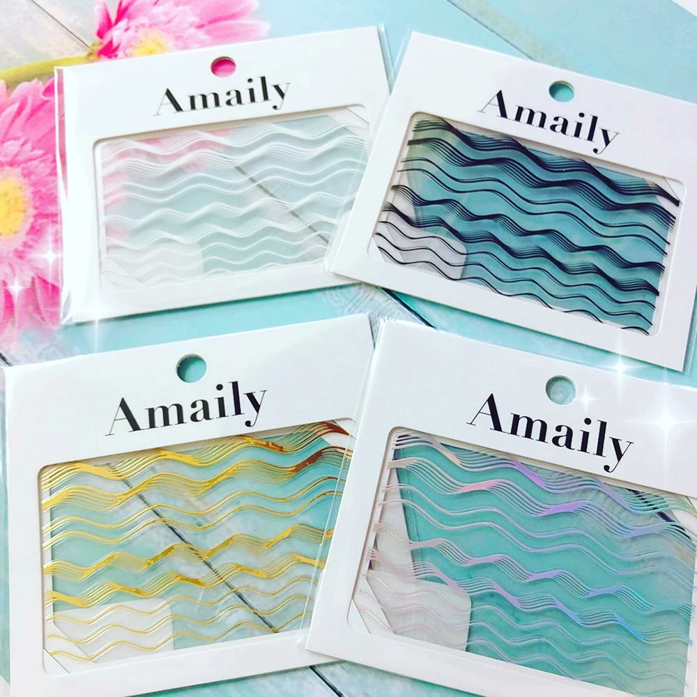 These premium Japanese nail art stickers in holographic wavy lines can be used to create a variety of nail designs!