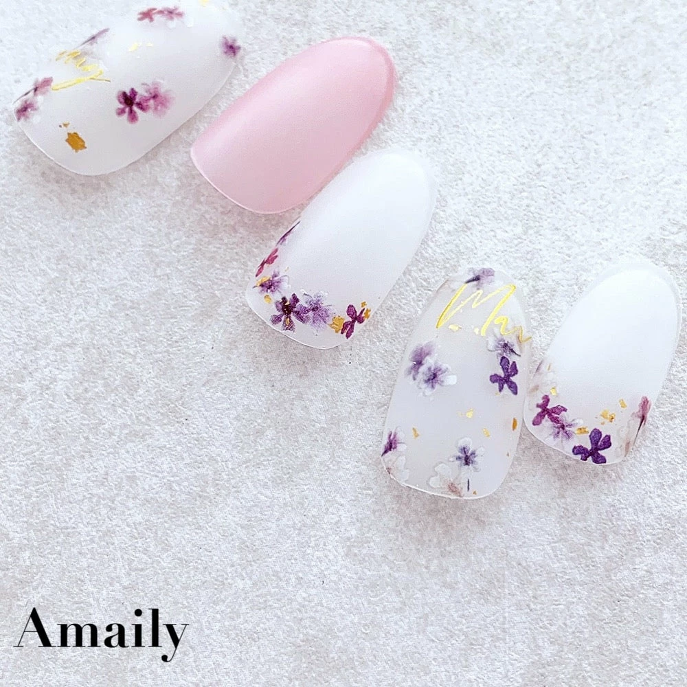 Decorate your nails with tiny dry pressed wildflowers in pink, red, purple, white and grey colors. This premium Japanese nail art sticker is a must have for floral nails!