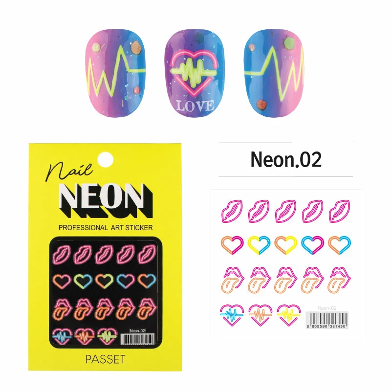 Watch your nail designs light up under UV blacklight with these fun and bright neon stickers! This sticker includes neon outlines of lips, hearts, and heart beats, perfect for Valentine’s Day nails and hot girl nails!