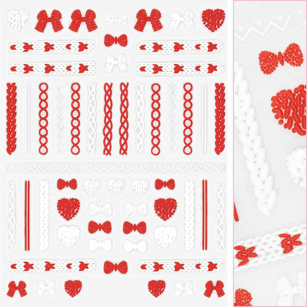 Decorate your nails with these adorable red and white sweater patterns, bows and hearts. Perfect for fast and easy winter sweater nails or cozy Valentine’s Day nails!
