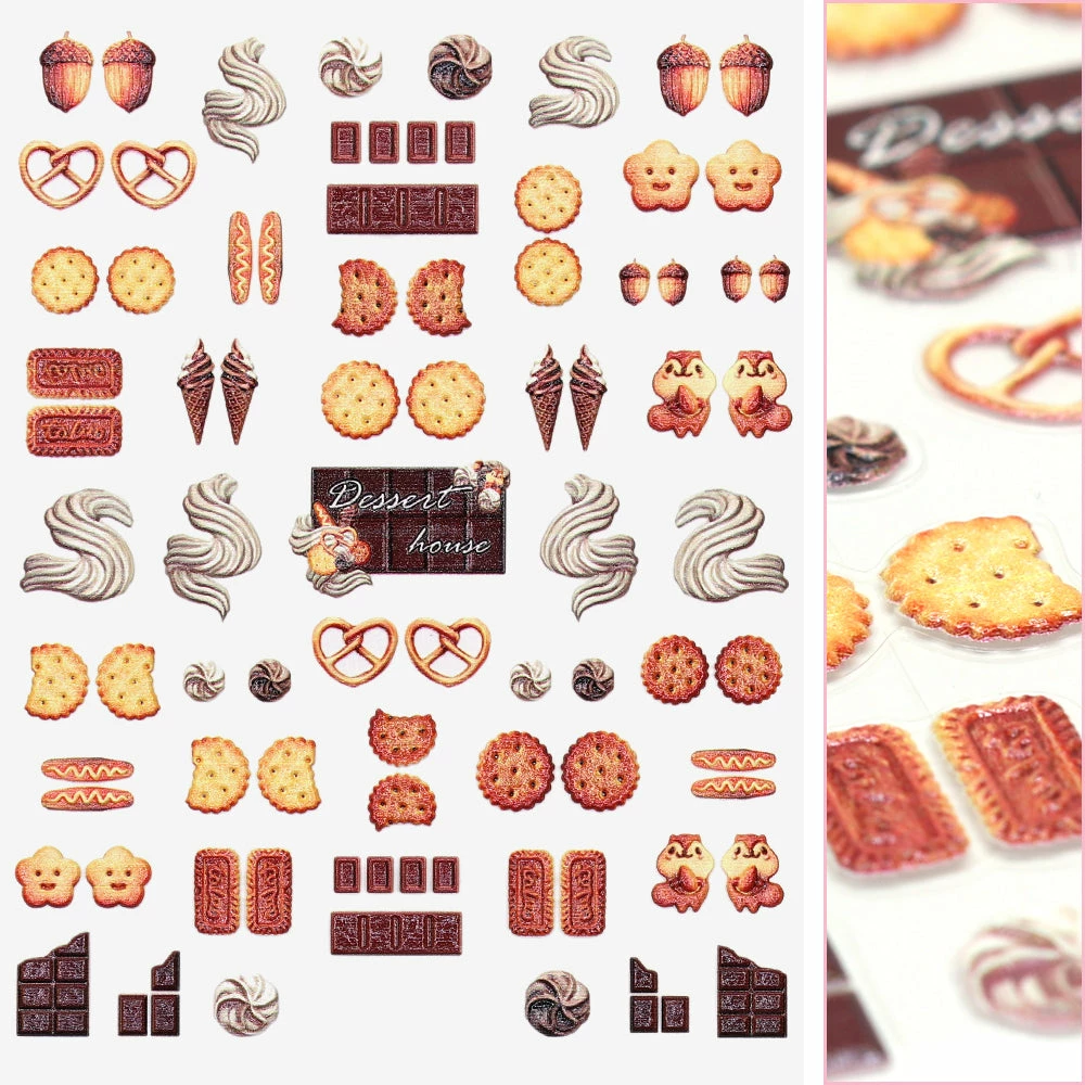 Decorate your nails with deliciously sweet treats! This sticker is perfect for dessert themed nails and Valentine’s Day nails, it includes designs such as bread, chocolate, cookies, biscuits, ice cream cones, pretzels, squirrels, acorns and cream swirls.