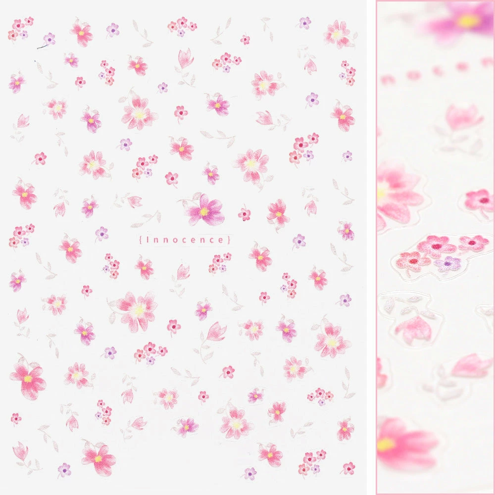 Delicate pink and lilac flowers and leaves, perfect for spring nails, floral nails and wedding nails!