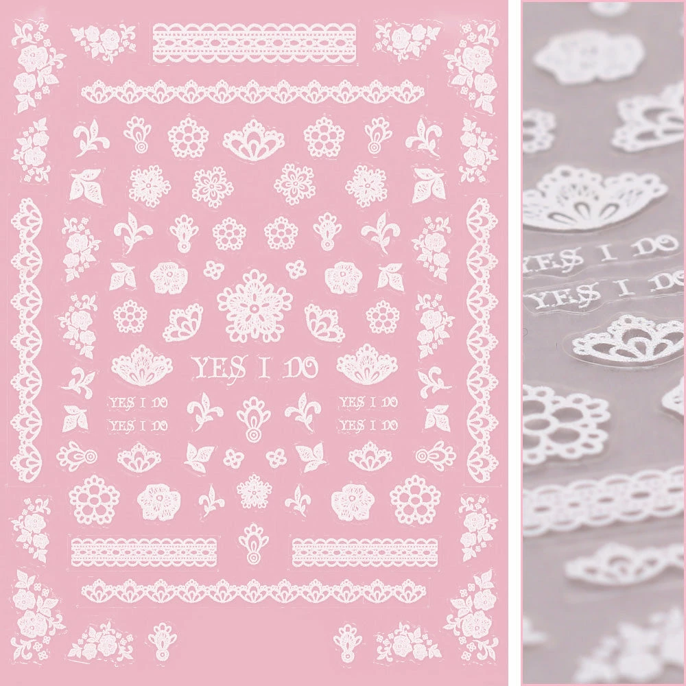 Beautiful and ornate white lace floral embroidery patterns and sweet “Yes I Do” message. This sticker design is perfect for Valentine’s Day or wedding nails!