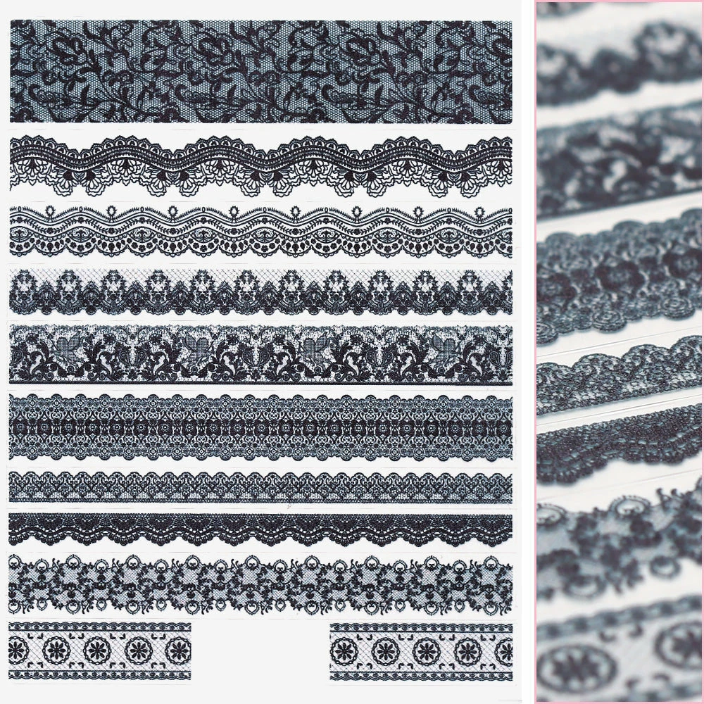 Delicate floral black lace patterns and designs. This sticker is perfect for Valentine’s Day or black lace nails!