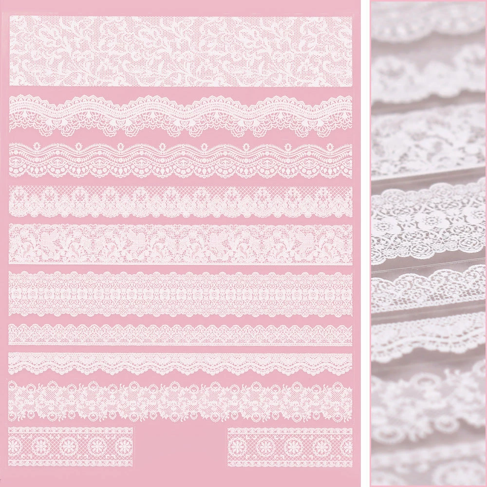 Delicate floral white lace patterns and designs. This sticker is perfect for Valentine’s Day or wedding nails!