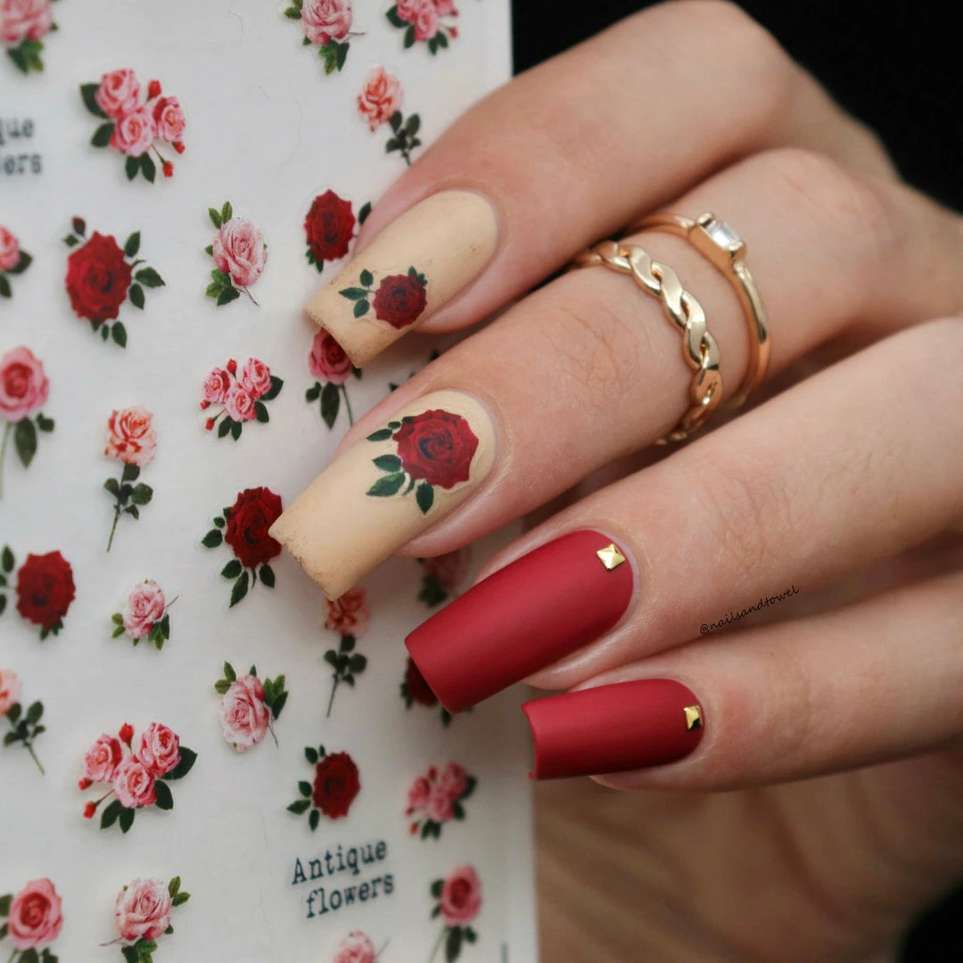 Beautiful vintage red and pink roses in different sizes to fit perfectly on your nails!