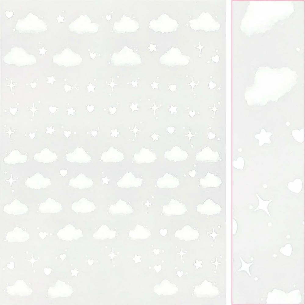 Decorate your nails with dreamy white clouds, stars, sparkles and hearts. This sticker include clouds in different sizes, it’s perfect for cloud nails and angel nails!