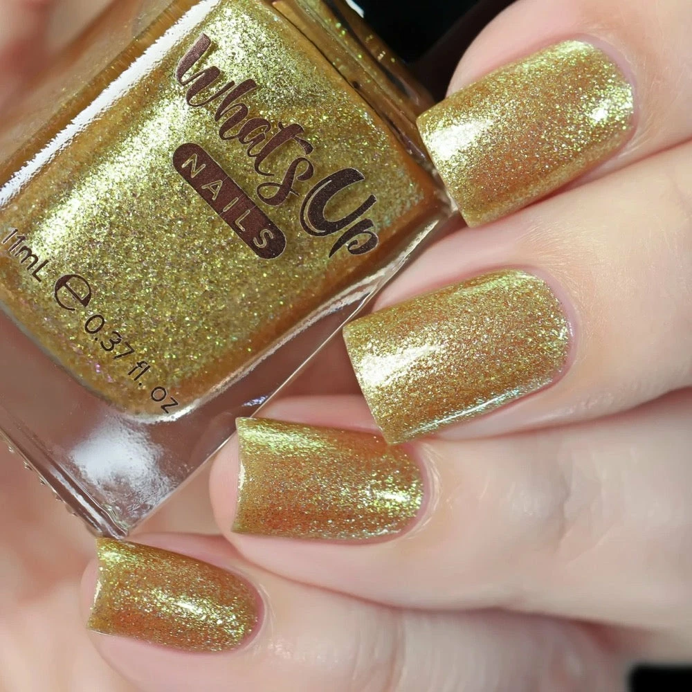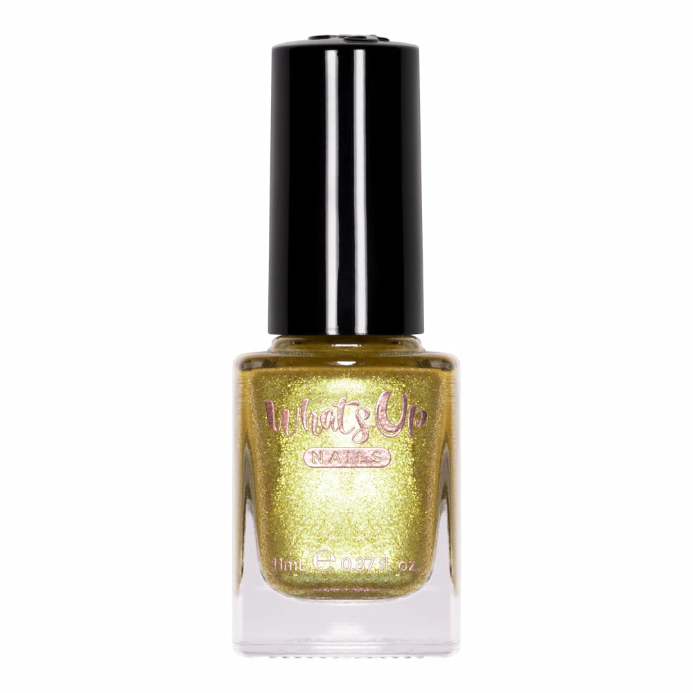 Have your nail art designs glimmer and shine like the sun with this gold chrome shimmer nail polish with iridescent gold to green duochrome shimmer. For a fully opaque look it is recommended to apply 2-3 layers of polish as base color or 1 layer as a topper. Use glossy top coat to get extra sparkle effect.