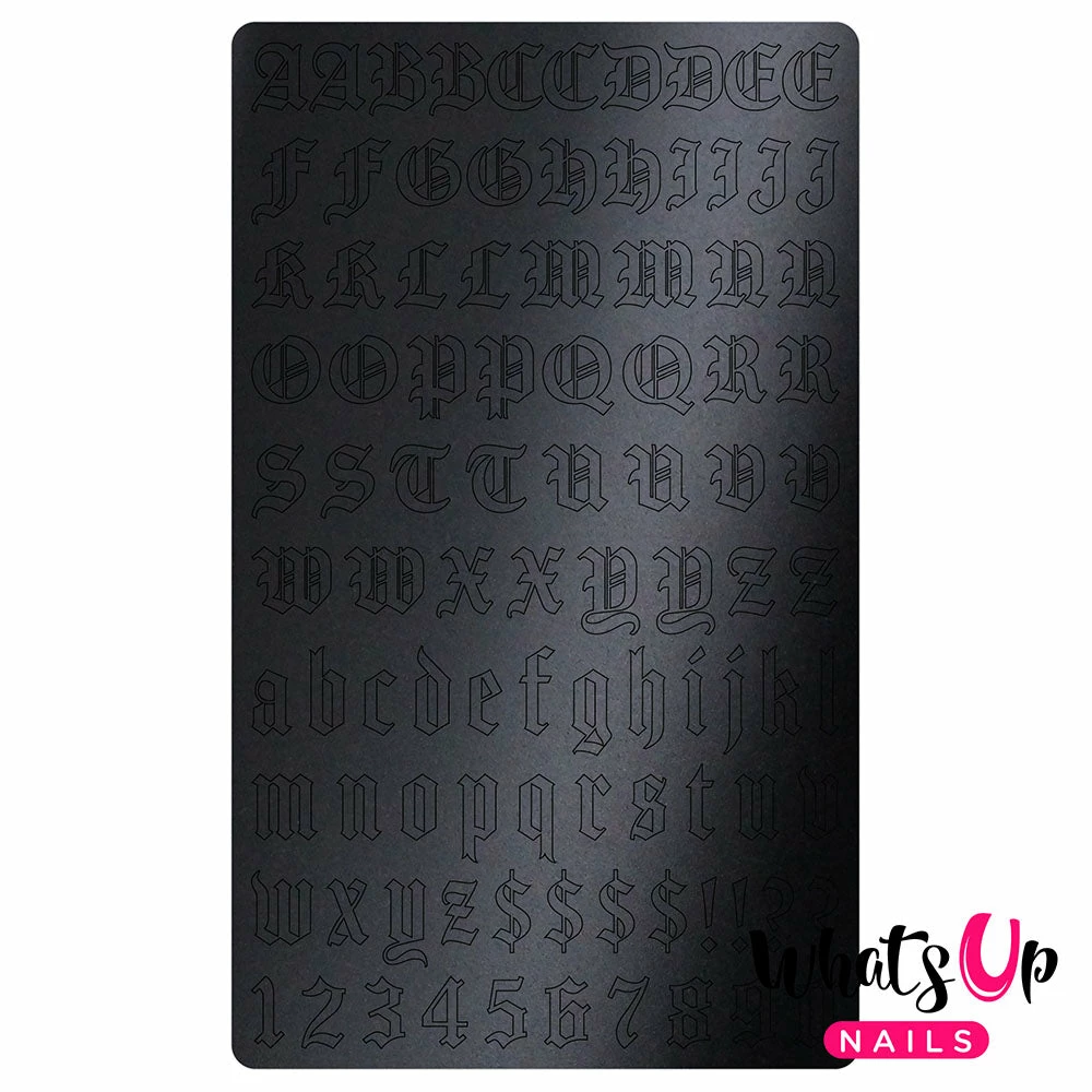 Blackletter Alphabet – This highly in demand Old English letters design is a must have in your nail kit! Both upper and lower case alphabet letters make it easy to spell any phrase you want on nails. Design also include symbols and numbers.