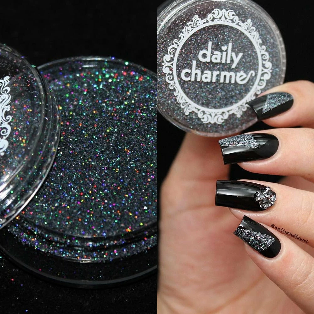 Deathly Holo is the darkest black with the most holo we have seen! This glitter pairs wonderfully with Charme Gel / 001 Perfect Black. Our Holographic Glitter Dust can be used with gel, nail polish or acrylic for endless designs.