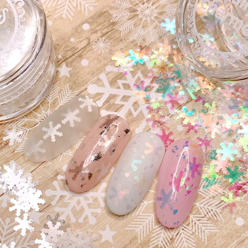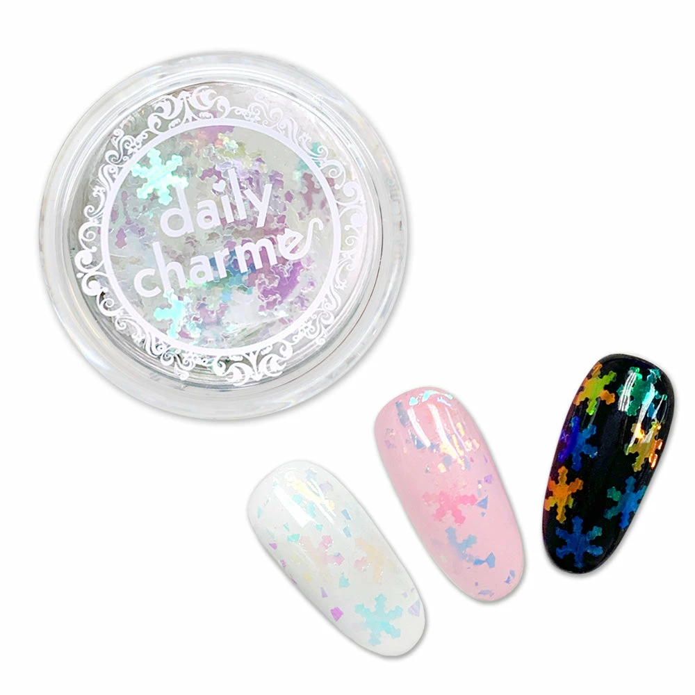 Delicate snowflake shaped glitters, they’re the perfect accessory for your winter holiday nails. This Aurora mix comes with iridescent blue and pink snowflakes.